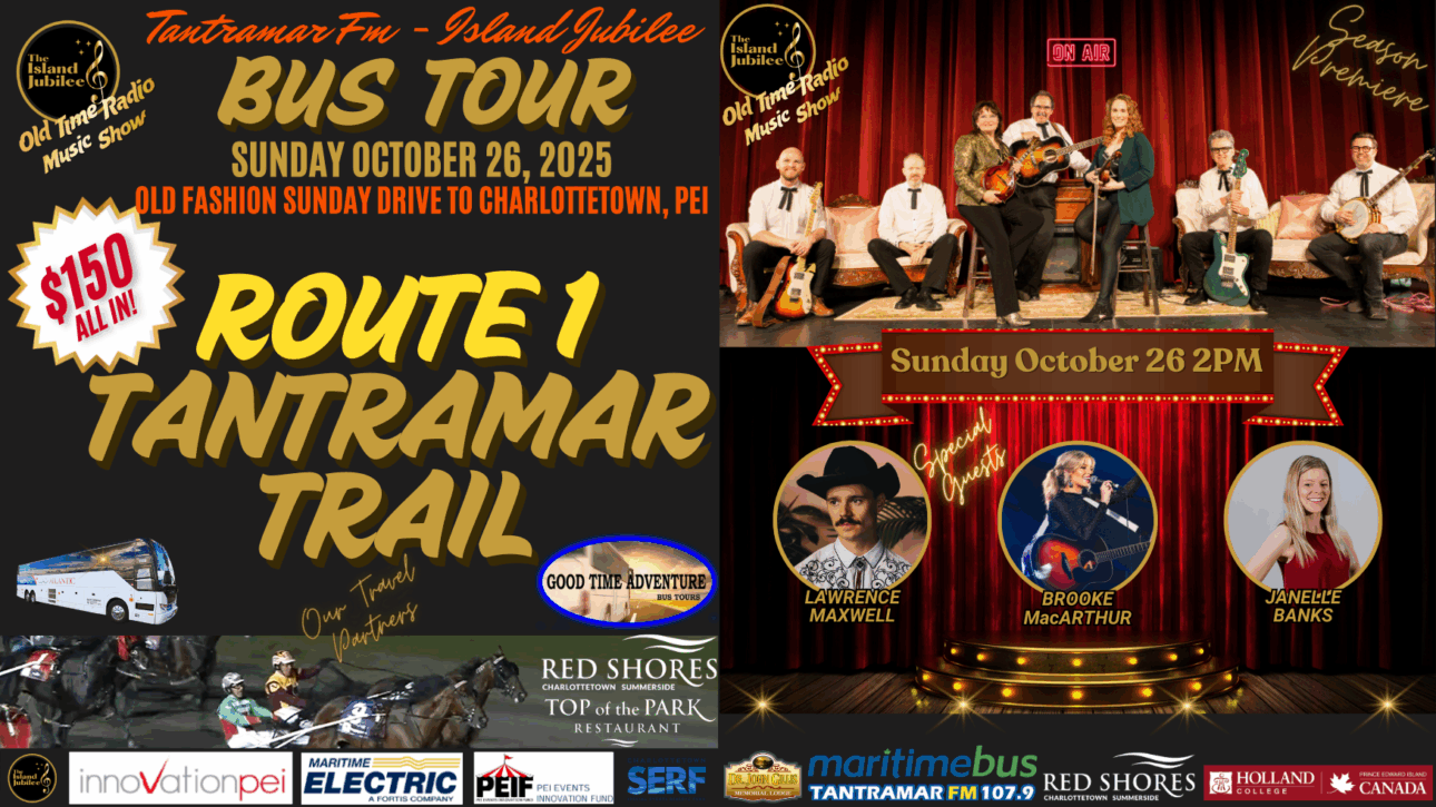 Proudly presented by Tantramar 107.9 FM, Island Jubilee, Red Shores, Coach Atlantic, and PEI Tourism partners.